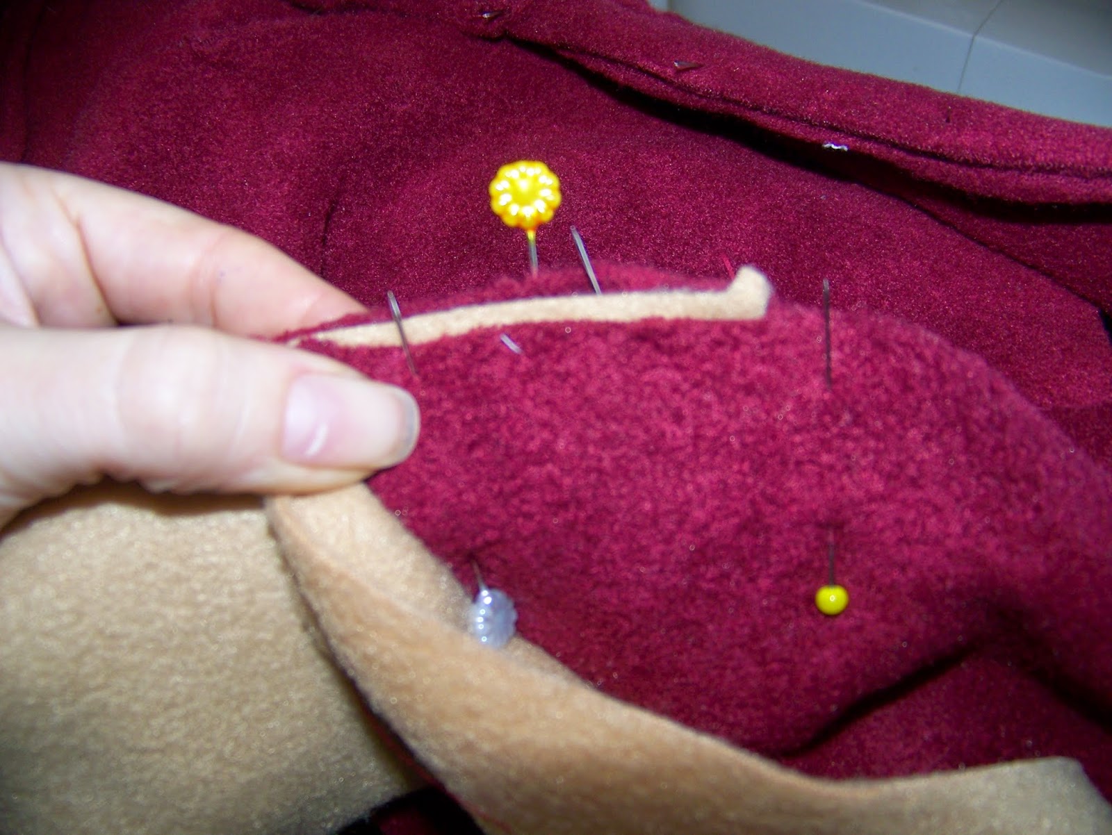 For the moment we are going to ignore the lining fleece, just let it hang down for now.